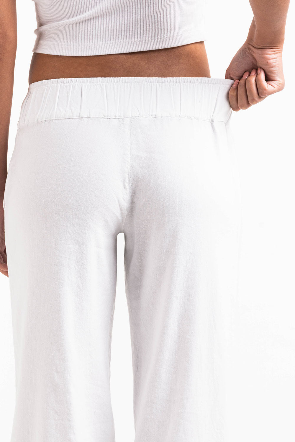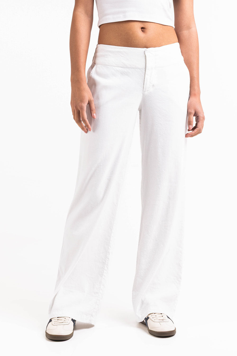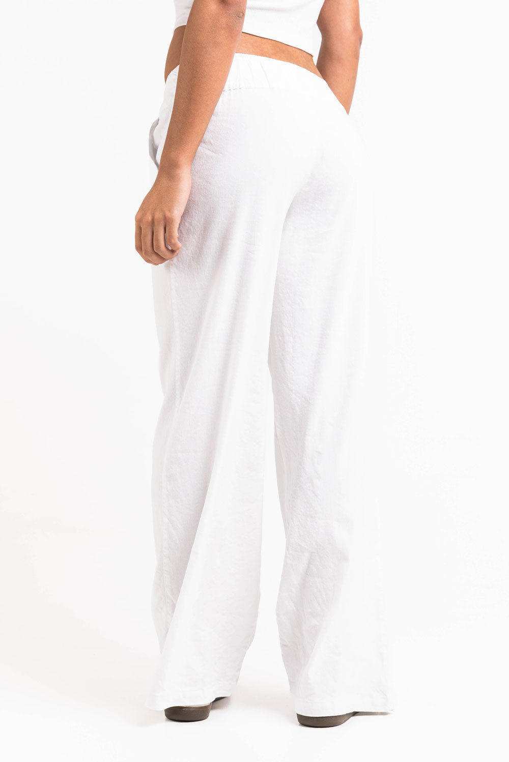 Mabel 03Low LinStretch Straight Linen Pants - White