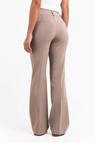 Diese Anzughosen mit mittlerer Taille haben eine Bootcut-Passform. Hergestellt aus einem dehnbaren Stoff für ganztägigen Komfort. Aufgesetzte Gesäßtaschen und großzügige Gürtelschlaufen bieten Platz für sowohl schmale als auch breite Gürtel. Die Hose wird mit Reißverschluss, Haken und verdecktem Knopf geschlossen.
