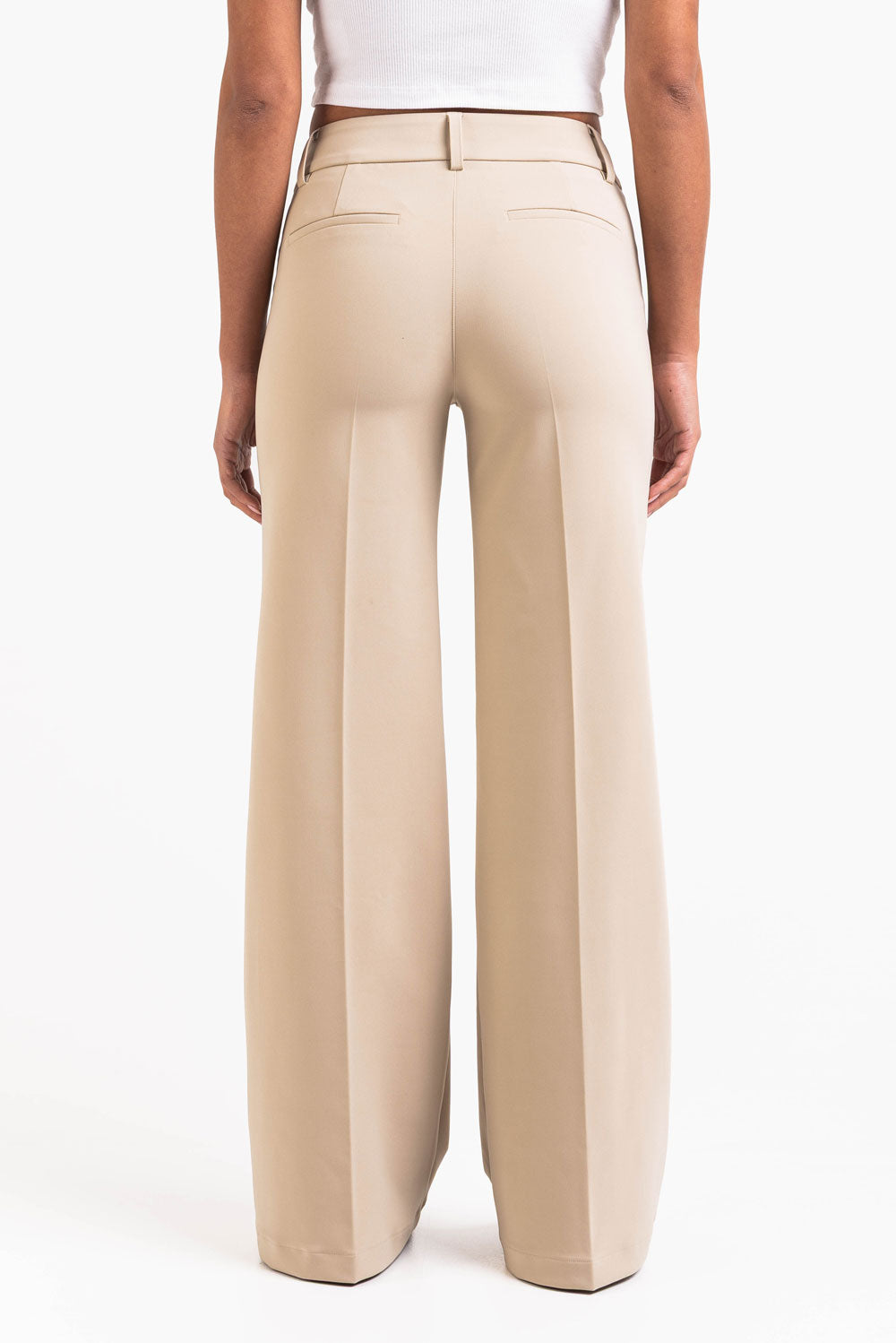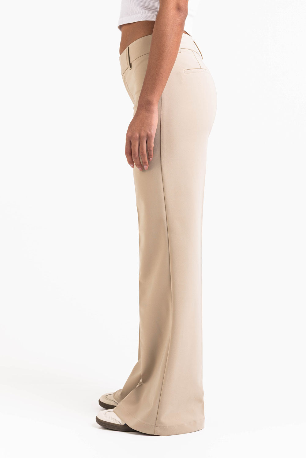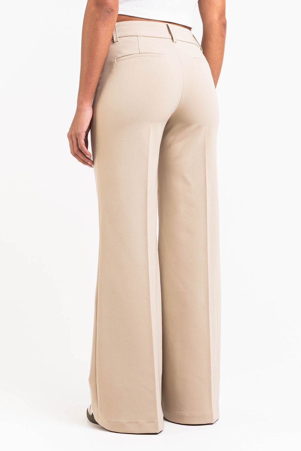 Anzughosen mit mittlerer Taille und ausgestellten Beinen. Hergestellt aus einem dehnbaren Stoff, der den ganzen Tag über einen bequemen Sitz garantiert. Mit aufgesetzten Gesäßtaschen und breiten Gürtelschlaufen, die sowohl schmale als auch breite Gürtel halten. Die Hose wird mit Reißverschluss, Haken und verdecktem Knopf geschlossen.