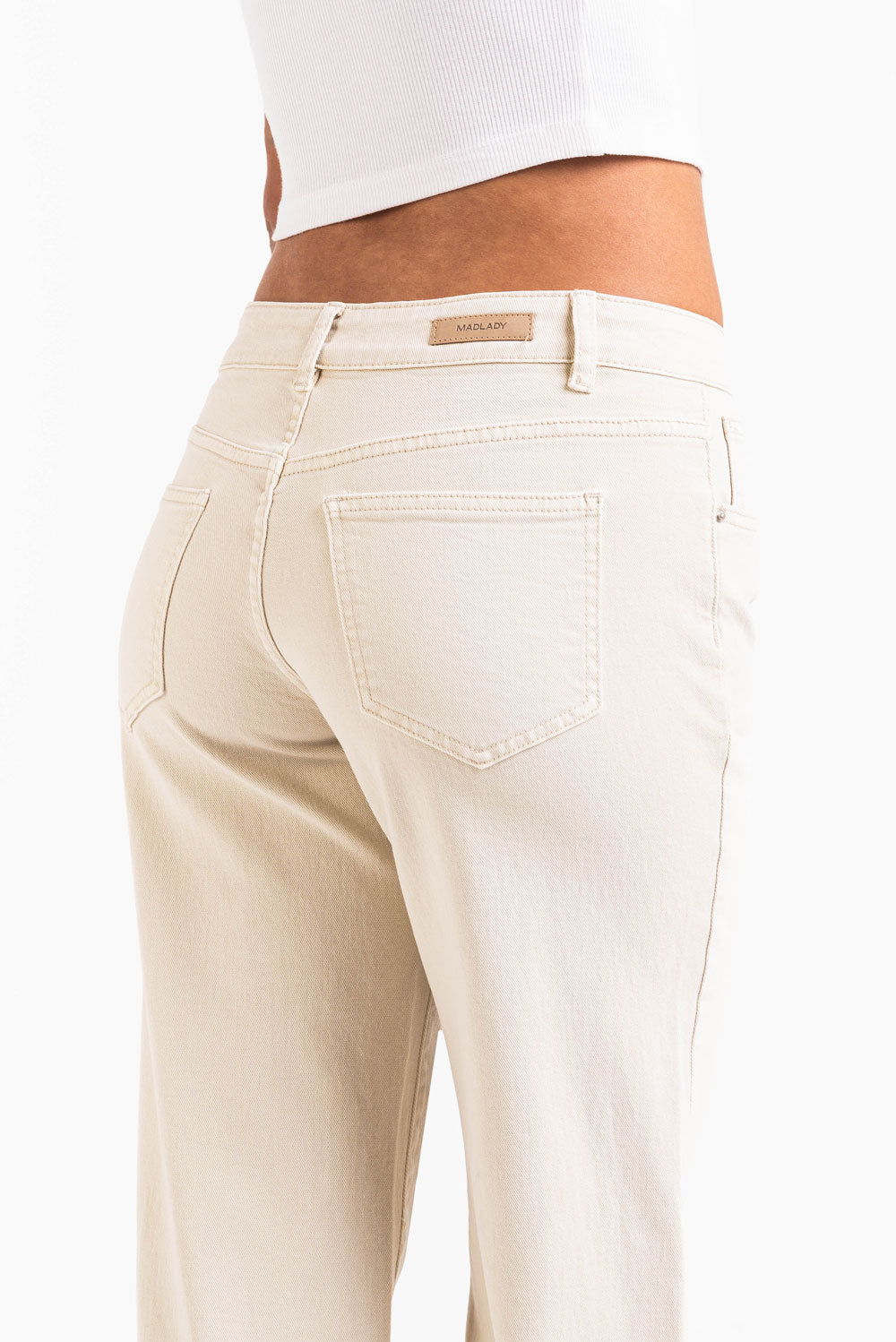 Wir bieten alle drei Taillenhöhen an: Low, Mid oder High. Low für einen entspannten Retro-Look. Mid für den klassischen Fit, der immer funktioniert. Wähle High, wenn du deine Taille betonen und zeitloses Denim-Selbstvertrauen zeigen willst. Verschiedene Taillenhöhen, ein perfekter MADLADY-Fit.