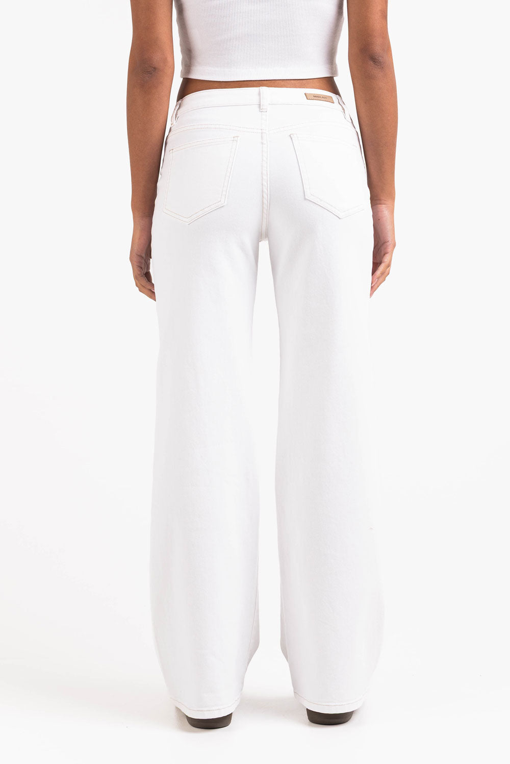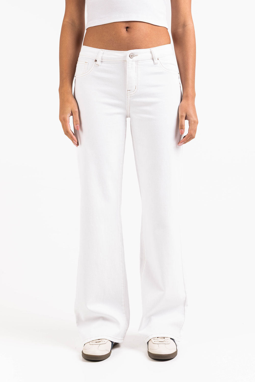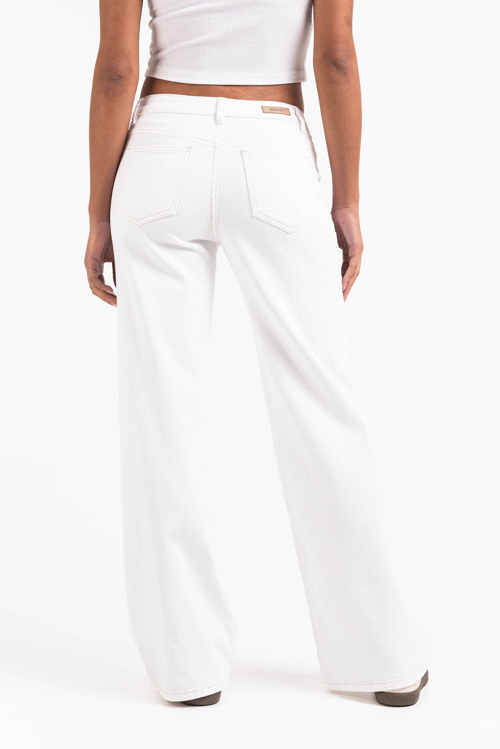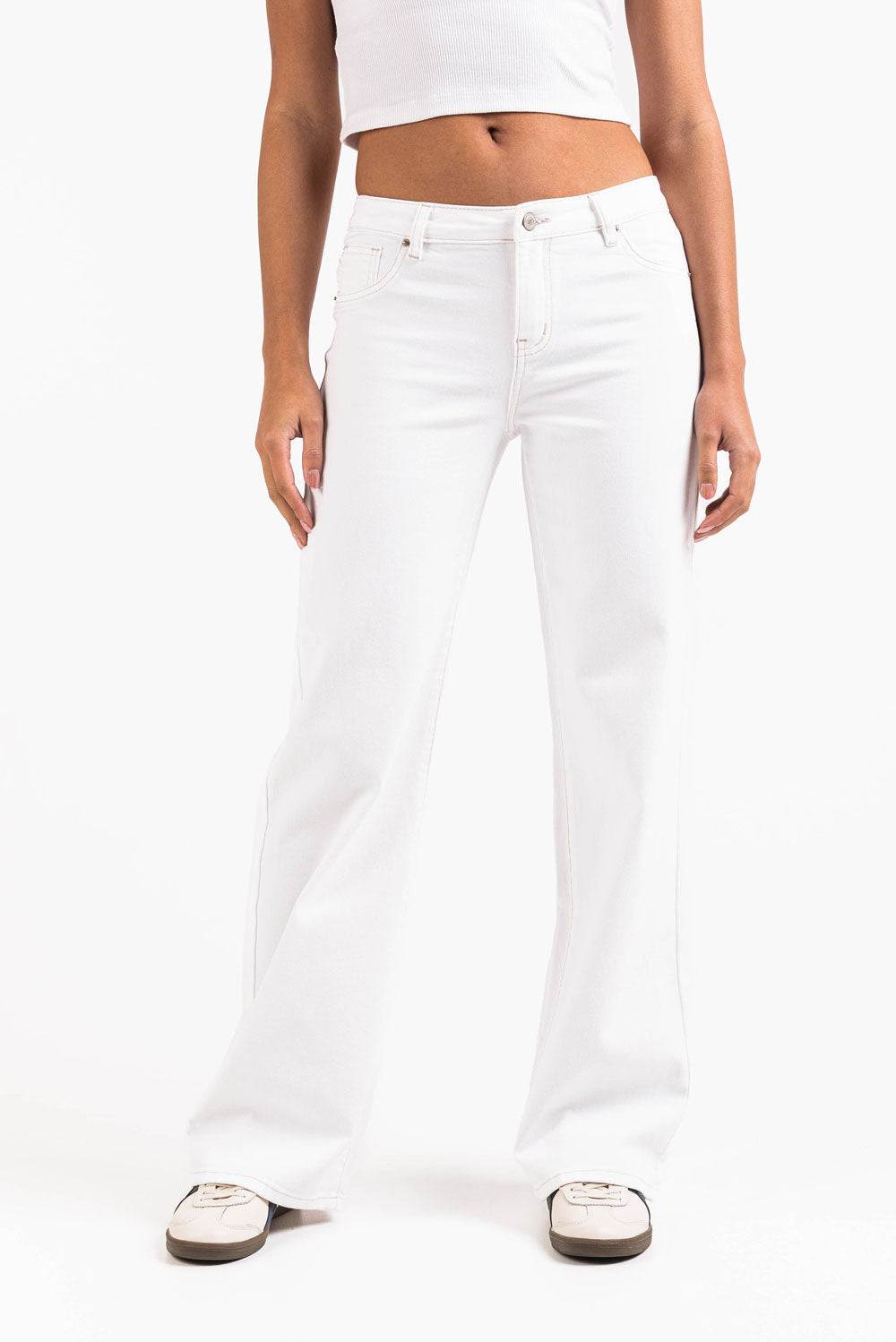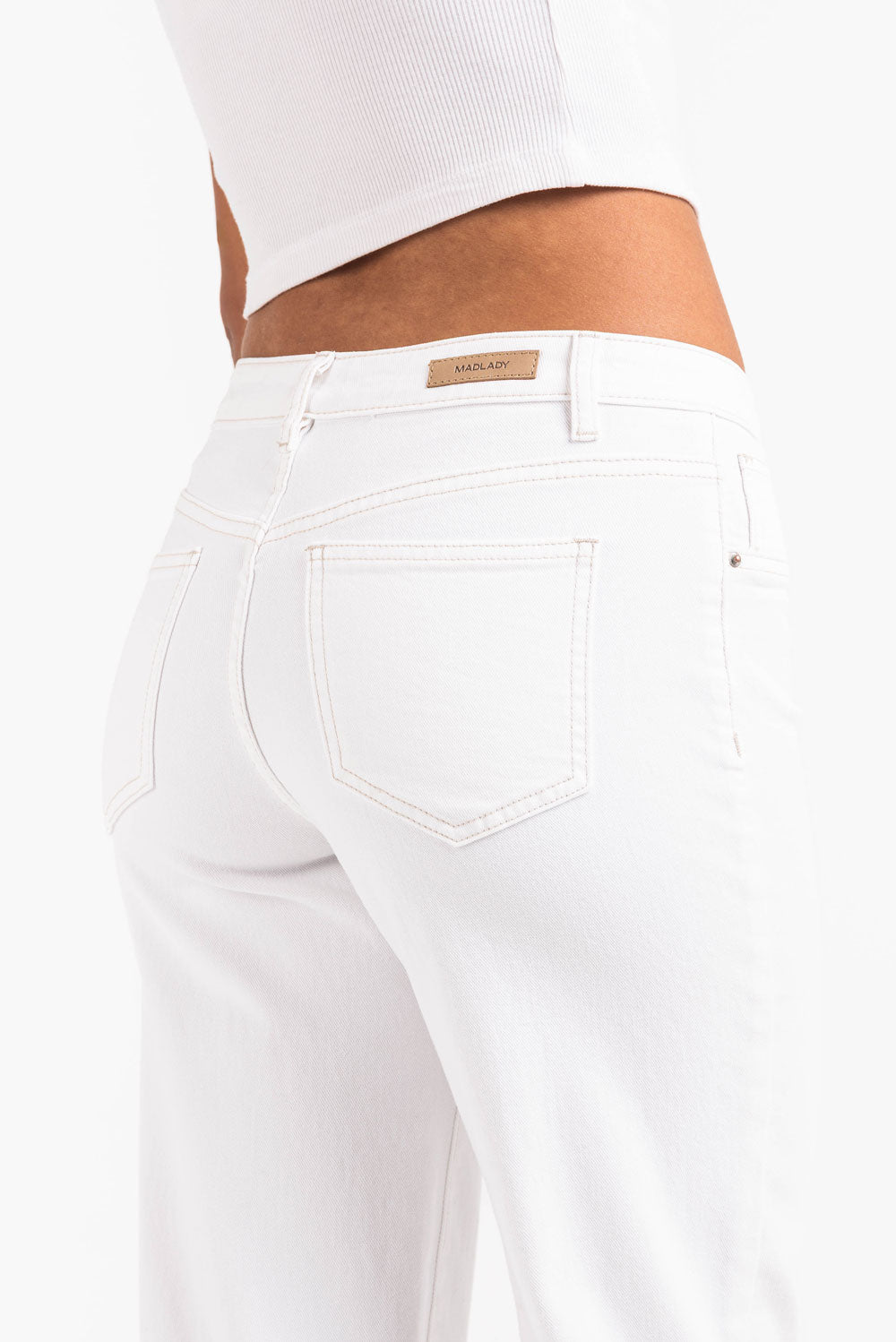 Wir bieten alle drei Taillenhöhen an: Low, Mid oder High. Low für einen entspannten Retro-Look. Mid für den klassischen Fit, der immer funktioniert. Wähle High, wenn du deine Taille betonen und zeitloses Denim-Selbstvertrauen zeigen willst. Verschiedene Taillenhöhen, ein perfekter MADLADY-Fit.