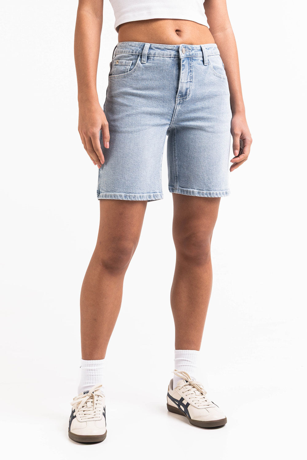 Disa 02Mid 20cm Straight Jeans Shorts - Bleach Blue