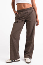 Mandy 01Mid Straight Loungehosen - Brown Striped
