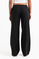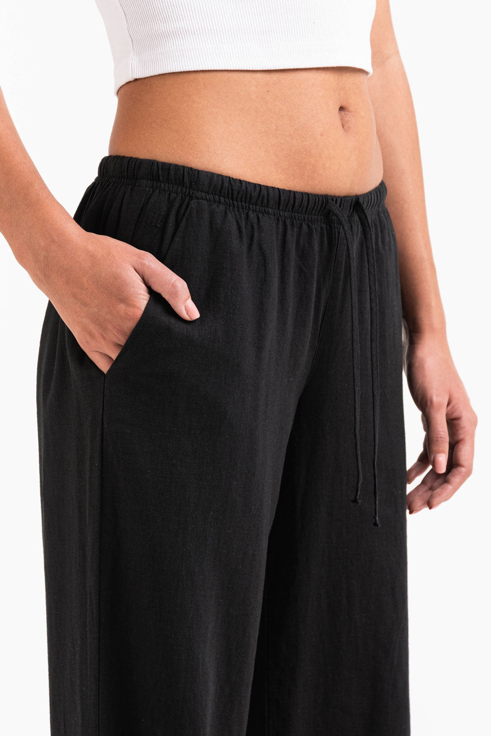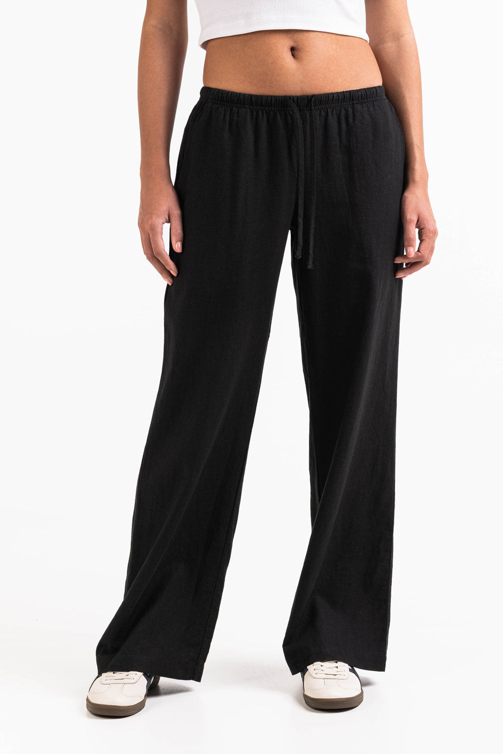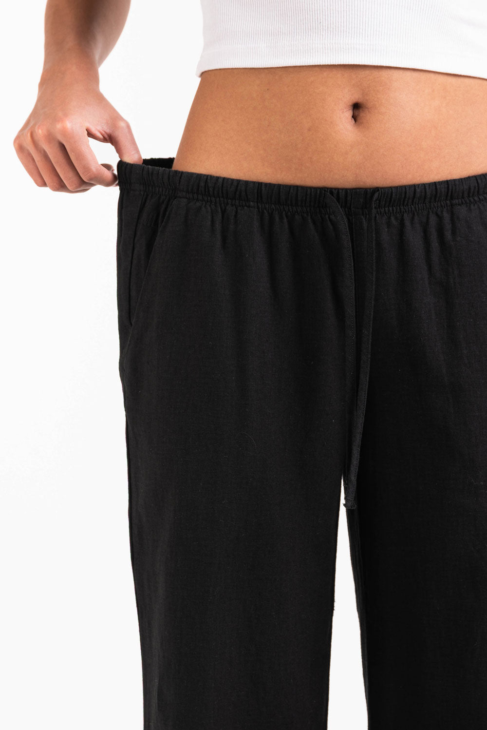 Diese tief sitzende Leinenhose hat eine entspannte gerade Passform mit praktischen Seitentaschen. Der elastische Bund mit Kordelzug sorgt für leichten Tragekomfort bei lässigen Outfits.