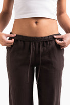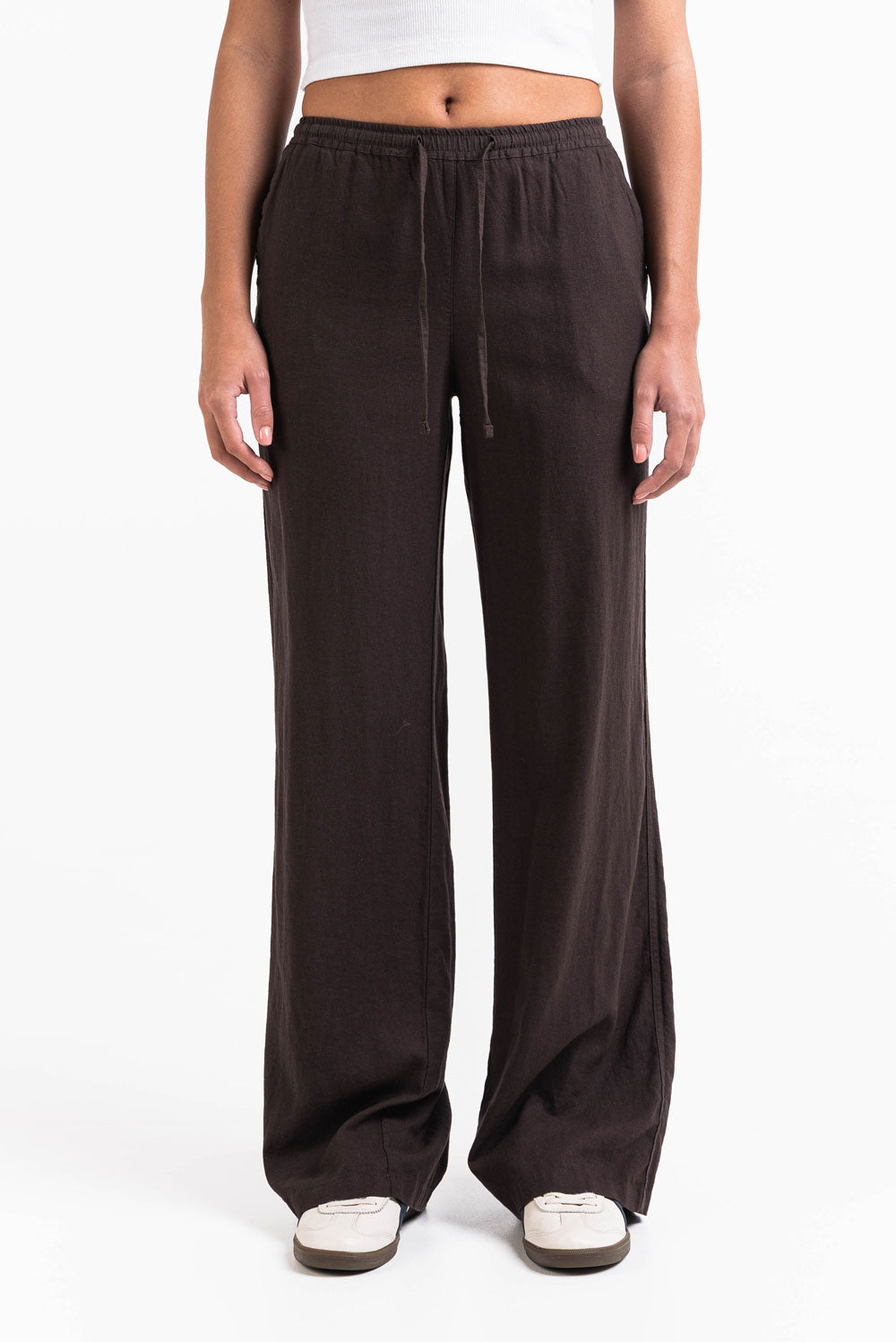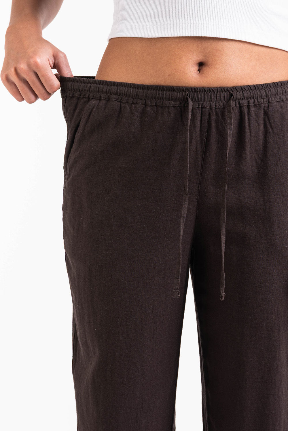 Diese mittel taillierte Leinenhose hat eine entspannte gerade Passform mit praktischen Seitentaschen. Der elastische Bund Kordelzug und das faltbare Design sorgen für eine sichere Passform während sie leicht und atmungsaktiv bleibt.