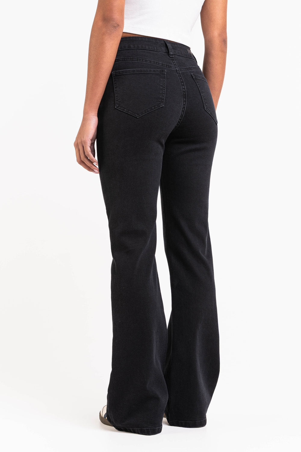 Diese hoch taillierten Jeans haben eine Bootcut-Passform mit hinteren und seitlichen Taschen für Funktionalität. Mit Gürtelschlaufen und einem Reißverschluss ausgestattet bieten sie eine vielseitige strukturierte Optik für mühelos lässige Outfits.