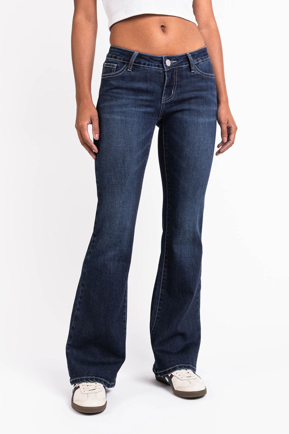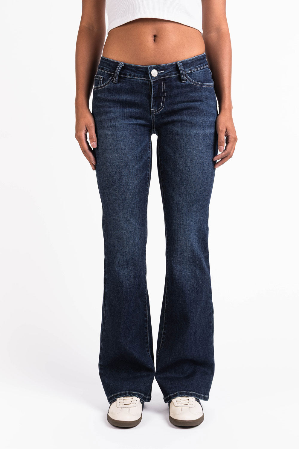 Wir bieten alle drei Taillenhöhen an: Low, Mid oder High. Low für einen entspannten Retro-Look. Mid für den klassischen Fit, der immer funktioniert. Wähle High, wenn du deine Taille betonen und zeitloses Denim-Selbstvertrauen zeigen willst. Verschiedene Taillenhöhen, ein perfekter MADLADY-Fit.