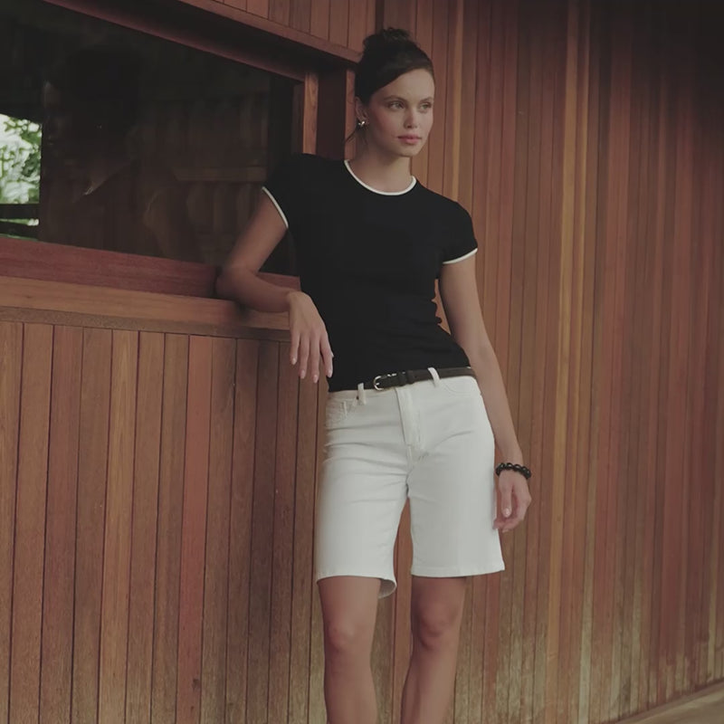 These mid-waist shorts are made from soft cotton fabric and feature a straight fit. Back pockets provide everyday functionality and fake side pockets. Designed with belt loops and a zip fly, they offer a timeless and relaxed look.