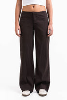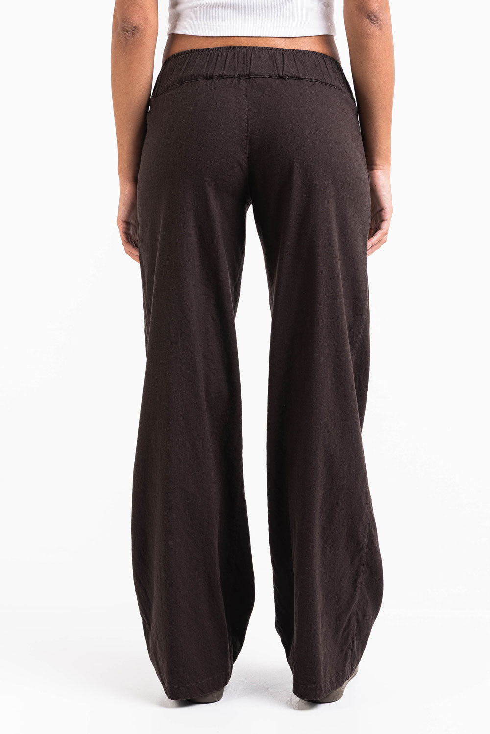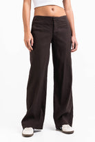 Mabel 03Low LinStretch Straight Linen Pants - Brown