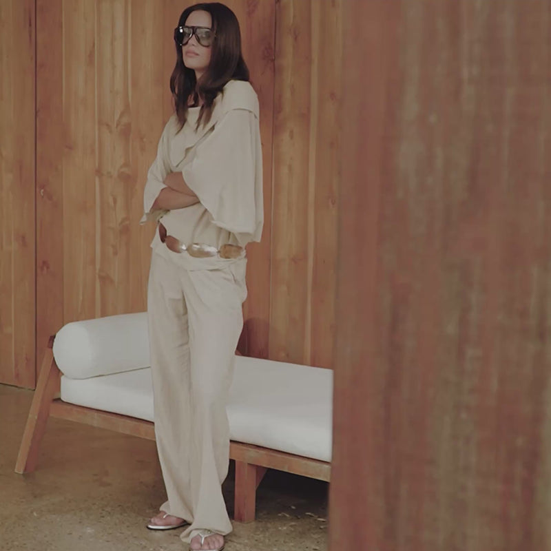 Mel 04Low Straight Linen Pants - Light Beige