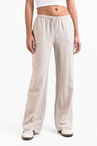 Mila 01Mid Straight Linen Pants - Beige
